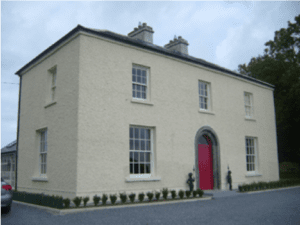Once we arrived in County Galway, we headed towards the town of Gort using the 1841 ordnance map, the photo of Maryville House which only provided the name Cahermore Townland as the address, and our trusty GPS! We passed the tiny town of Kinvarra and travelled along the road where we thought the house may be but found nothing except many large, new houses either for rent or for sale with no one in them. This was just post GFC and a housing disaster had hit Ireland. My son had the brainwave of putting the townland of Cahermore into the GPS and amazingly the GPS politely directed us to a new route which we followed for some time. We were about to give up and turn back to Galway when my husband, who was sitting in the back seat with the photo, suddenly said “Isn’t that it? I recognise the windows.” And there was the house in the photo, Maryville House.