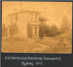 My grandmother was Eva Minnie Grace McGill (née Hardwicke). She was born on 10 June 1886 at Dotswood, Smith Street, Summer Hill (now Ashfield) in Sydney.[2] Her father Harry Weedon Hardwicke had been born in Tasmania but had moved to Townsville, Queensland where he met his future wife Louise Christina Schattling whose family had immigrated from Germany. Harry managed Dotswood and Rockwood Stations, near Hughenden, around 1875 and was the first hotel keeper and storekeeper in Hughenden and the proprietor of the Queen’s Hotel, Townsville.[3] By the time my grandmother, Eva, was born the family were living a comfortable life in Sydney.