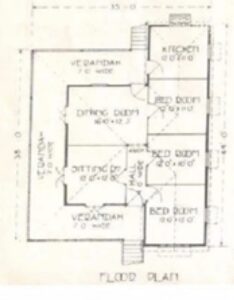 I have looked through a number of catalogues of houses for sale at the time and the Allora design is the closest to the layout of my house. One of the customers of Redicut Homes which made these houses said ‘I have placed my house so that the dining room and sitting room face the North, and we should not wish for a cooler, more comfortable home’. Our house also faces the north but when we bought it, there were no railings on the verandah and it was closed in with wooden shutters which meant any breeze was blocked. The Larsens may have chosen not to have verandah rails or the next owners replaced them.
