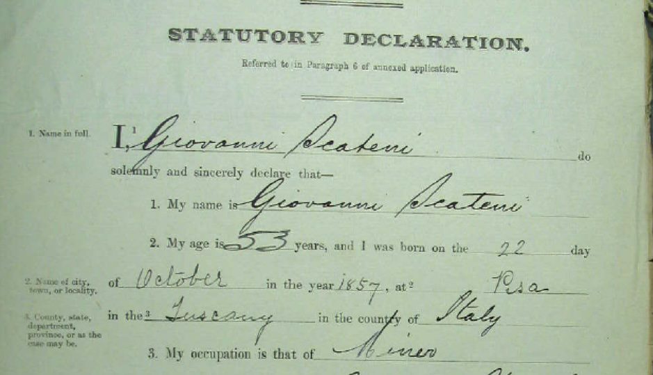 Quite quickly however, it became evident that Giovanni was born in the city of Pisa, in the Tuscany region of Italy – quite a distance from Ticino and Como. Of course, this did not rule out him having northern Italian roots – yet it did necessitate further investigation into the beliefs that had long been held by his descendants in Australia. In doing so, we soon discovered that the surname of Scateni was almost unknown in the region of Tuscany; however, the surname Scatena was very popular. After uncovering this fact, our Italian colleague was quite quickly able to find the baptism record for Giovanni Scatena with parent’s names that matched those given by Giovanni on Australian documents. Following this incredible discovery about the surname and the true origins of Giovanni’s ancestors – we knew that the Scateni name had been incorrectly spelled through the most recent generations, and more importantly, it had no connection at all to the Scattini families of Northern Italy or Southern Switzerland.
