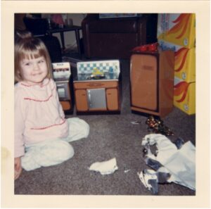 My most vivid Christmas memory when we still lived in Seattle was when I was about 6 years old. I woke up on Christmas Eve and went out to the living room to find Dad wrapping presents. I remember him asking why I was awake and telling me I needed to be quiet so that we wouldn’t wake up Mom or Greg. Then he showed me what he was doing. He had bought Mom a pink bowling ball, a bowling bag, and bowling shoes. My parents were avid bowlers for many years. Dad told me I had to keep this secret and not tell Mom. The memory I have from this moment feels so warm and cozy. The lights on the tree were glowing and my dad was sharing his Christmas secret with me. I remember feeling so important! And my favorite childhood gift was my toy kitchen. A gift from Santa when I was 3 years old. I played with that for hours and remember how excited I was when Santa brought it for me.