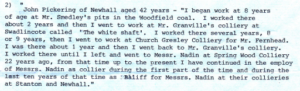 This John Pickering provided a potted life history from when he started work at 8 years old until his current age of 42 years; he listed all the collieries at which he’d worked and for how long. This was not only fascinating in providing a detailed life history of this potential ancestor, but demonstrated how coalmining developed in this area.