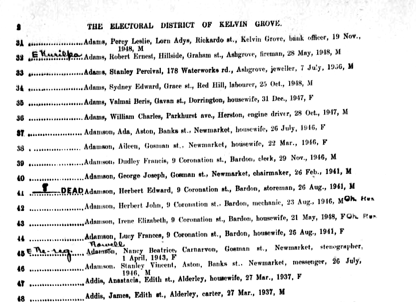 - I’ve discovered that some of the Queensland electoral rolls at Queensland State Archives have now been digitised from the microfilms. (Use a pay-to-view site to identify the roll you want). Why do both? Because the archives holds the master copy and has added annotations such as “objection”, “deceased”, or which electorates they’ve moved between.