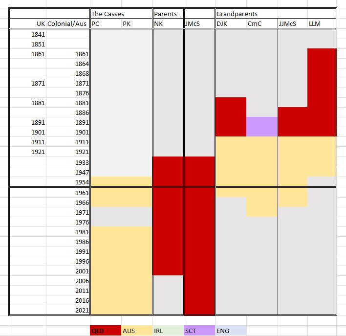 Which raises other interesting points. Reading through the historical census data information, expats in the Territory of PNG as it was then, were enumerated in the Australian census in 1954, not long after his family had arrived. I’ve some exploring to do around that. I’m also curious about how boarding schools reported their students’ birthplaces, parents, and usual place of residence. This affects Mr Cass’s enumeration in a couple of censuses.