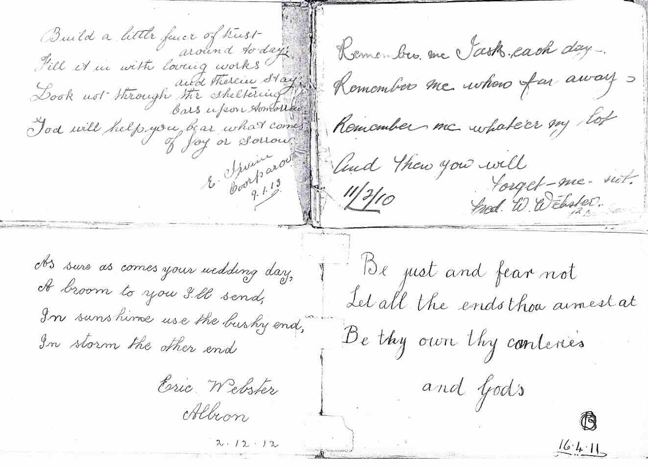 Bottom Right: A poem by unknown, possibly one of the local Beveridge family who Lill and her sister Edith were close to.