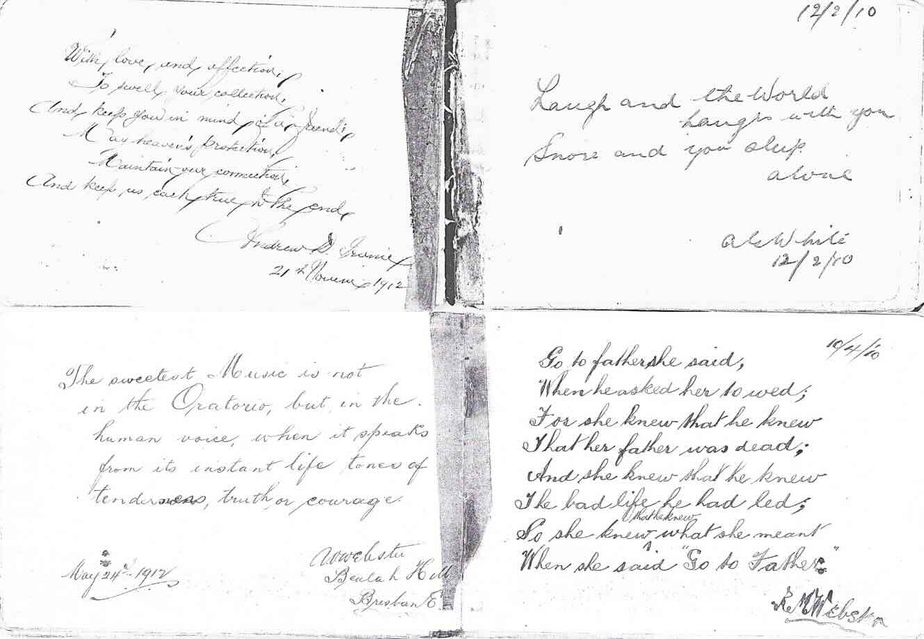 Top Left: A poem by Lill’s future husband, Andrew D. Irvine on 21 Nov 1912.
