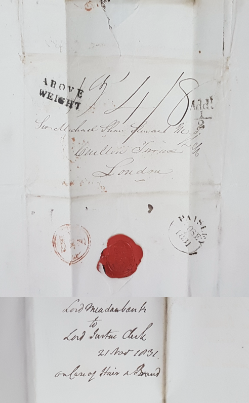 A letter was also included with the petition letter. It was dated 21 November 1831 from the presiding judge at the trial, Lord Meadowbank, on his behalf and that of the other justice, Lord Mackenzie. This letter made some profound statements. Meadowbank commented that the crime of uttering forged notes was highly prevalent in Glasgow and the surrounding area and that half the cases brought before the Circuit Court were of this nature. He also stated that ‘there are few crimes which are productive of greater injury to the inferior order of tradesmen’ than uttering forged notes. By this, he meant that lower-end tradesmen could least afford the loss of received forged notes. Meadowbank also stated that Bland and Hair carried out these crimes in the same manner as similar crimes committed by other criminals and that public justice needed to occur.