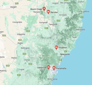 By 1843 they had made it to Glenbrook in the Blue Mountains, 70 kilometres west of Sydney along The Great Northern Road, where their second child, Edward was born. But they didn’t stay here long. Moving northwards they arrived at Patrick’s Plains, now Singleton, about 79 km west of Newcastle and 250 km further north from Glenbrook. It was a long and arduous journey to make in those days.