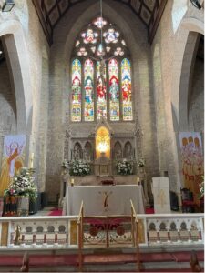 The visit was interesting because the church is a huge Roman Catholic Church, and it is open to the public. You can just walk in and have a look around. There’s no apparent worry about graffiti or vandalism which surprised me. It was an emotional experience to stand there at the altar and think that this was where my great, great grandparents John Finn and Sarah Fagan married before coming out to Queensland.