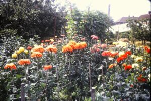 The back third of the garden was behind a hedge secured with a wooden gate leading to a very large vegetable garden. At the very back of the veggie section was another gate leading to the pensioner unit in the cul-de-sac behind, that was where Grannie Edes lived; a great arrangement to give the family easy access to ensure she was OK. As mentioned hubby’s dad had beautiful gardens and all featured dahlias of different coloured and types, as did the front gardens along with rose bushes.