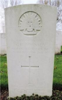 Stanley Townson, who is being honoured this year, was also serving in the 9th Battalion and not far away when George was killed. In his letter home, Stanley related that he did not know of his brother’s death until told about it and that he died from a shot in the head at about 10.30 at night. Mrs Townson also received a letter from Platoon Sergeant Williams who stated that, ‘His death is an irreparable loss to his regiment, both as a soldier and as a man. He was well liked by his comrades, and those who came in contact with him were unanimous in singing his praise’. [4] Chaplain Captain Rev. Joseph Lundie of Toowoomba conducted a burial service for George.