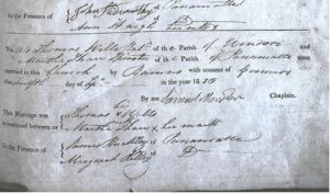 [17] Thomas Wells, Baring, 1815, New South Wales Archives and Records, NRS 12212, p. 012, ‘Convicts Applications to Marry, 1825-1851’.