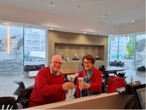 Leaving Ennis, we headed north and became tourists again. We drove up through Galway and then over to the west coast of Ireland to a place called Clifden, still in Galway. Marg wanted to see the Wild Atlantic Coast and it is indeed wild, and very pretty. We spent 3 nights there and then headed back to the east coast, however, somewhere along the way that day we picked up a flat tyre! We knew nothing of it until we pulled up in a shopping mall carpark to get some lunch and the fellow following us kindly leant out his window and said, “You have a flat tyre!” And it was. We also didn’t have a phone that could connect us to the local roadside assist people. So, we decided to drive on, pumping it up at every servo we passed which got tedious after a while. We finally got to the hotel in Belfast and unloaded the car to find that there wasn’t a spare tyre! The learning from this incident is to make sure, when you first collect a rental vehicle, that it has a spare tyre!