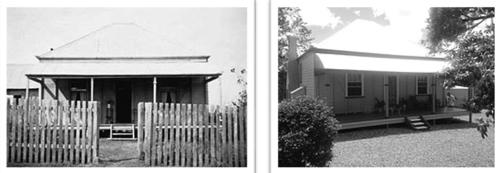 ‘The whole piece of land (is) enclosed by a substantial two rail split fence, also two acres of scrub land under cultivation and grubbed and one two roomed house built on sleepers with shingled roof.’